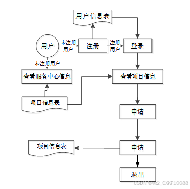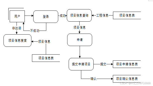 开发现代企业工程管理系统最主要的一个目的就是实现用户实现对项目信息管理,可以查看项目信息和申请项目操作,图3-1就是系统的数据流图。