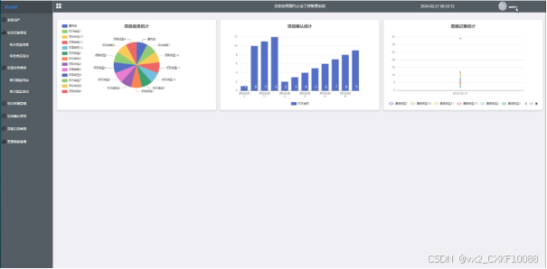 - 后台首页:可查看项目信息统计、项目确认统计、票据记录统计等数据分析。