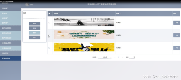 系统管理:管理员可以管理系统首页轮播图的显示内容,包括添加、编辑、删除轮播图等操作。