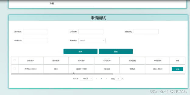 申请面试:招聘用户可以查看申请人的信息,安排面试等操作。