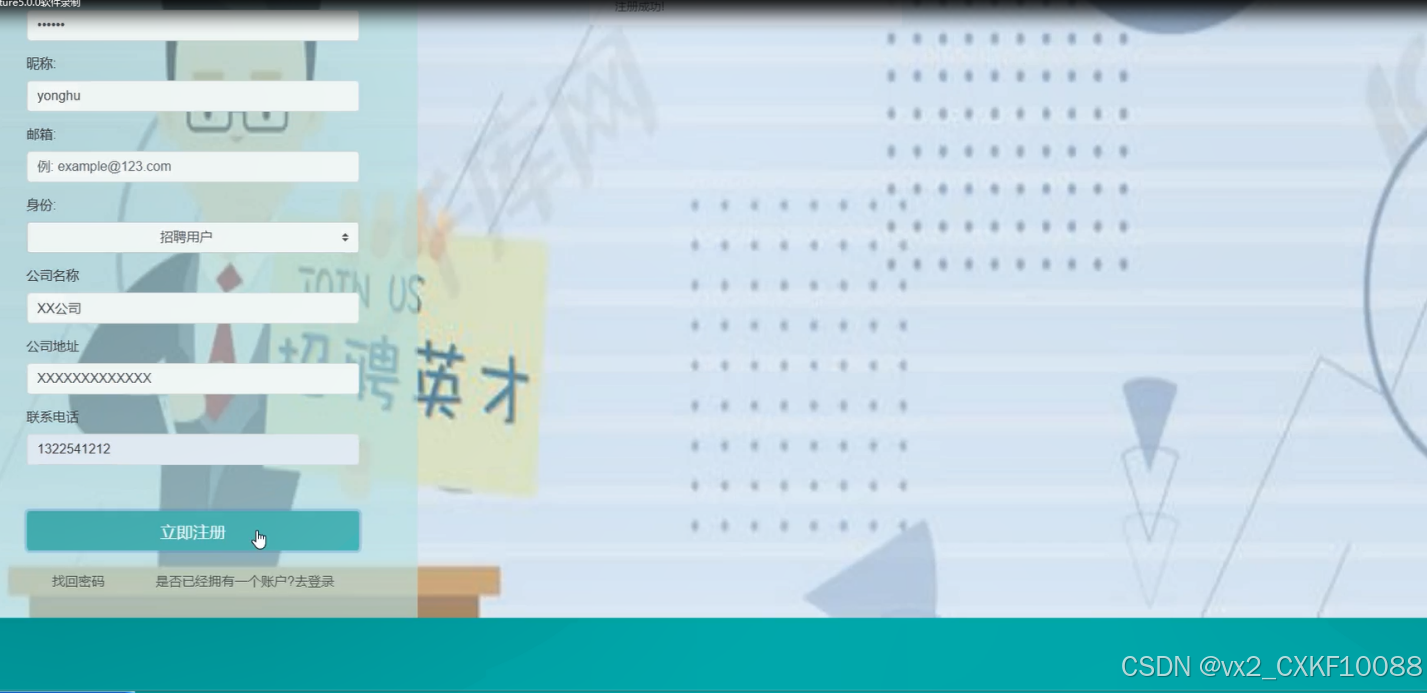 | 预期结果 | 提交以后,页面首页会显示新的招聘信息信息 |
