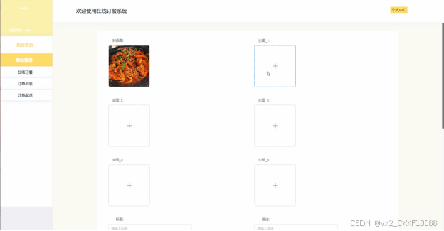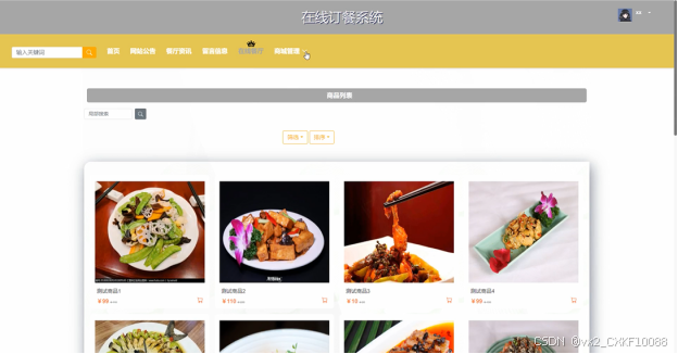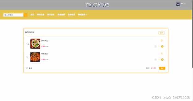 在线餐厅:在线餐厅功能展示所有可订餐的菜品,包括菜品名称、图片、口味等信息。用户可以根据自己的需求下单喜欢的菜品。