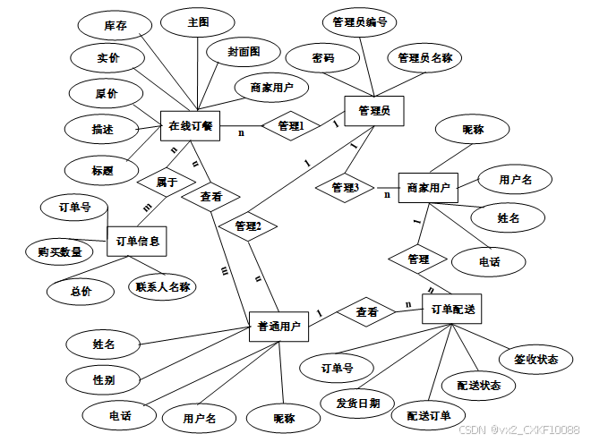 下面是整个在线订餐系统中主要的数据库表总E-R实体关系图。
