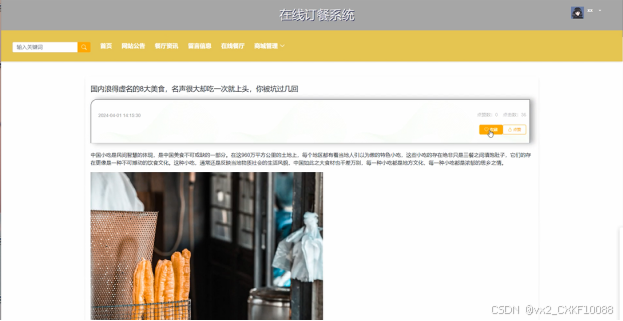 用户体验方面,系统提供了简洁明了的界面设计和流畅的操作流程,使得用户能够轻松完成注册、登录、浏览菜品、下单等一系列操作。个性化的服务和智能推荐功能也进一步增强了用户的满意度和黏性。