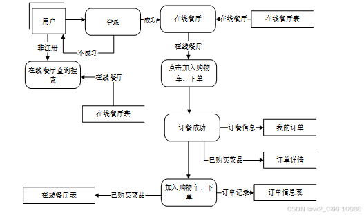 在线订餐系统主要的目的就是实现对在线订餐,图2-1就是系统的数据流图。