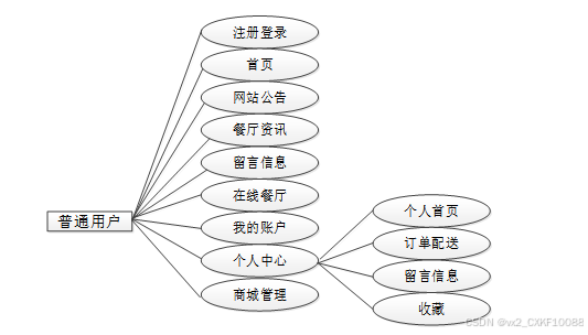 普通用户是在线订餐系统的主体用户群体,其功能需求旨在提供便捷、流畅的订餐体验。