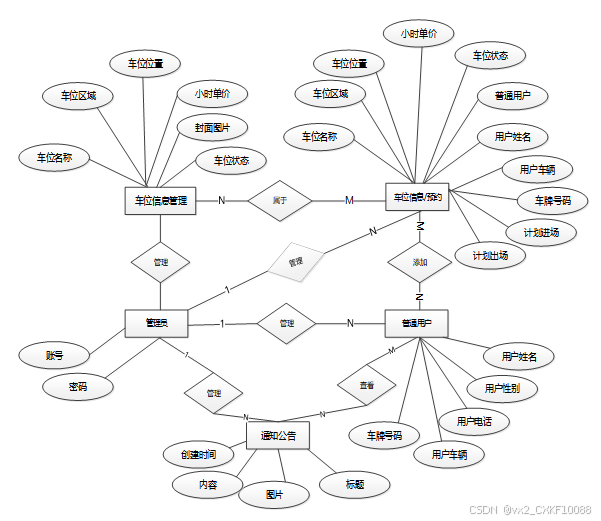 下面是整个校园停车管理系统中主要的数据库表总E-R实体关系图。