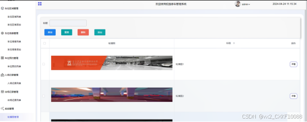 (3)车位区域管理:管理员点击可查看车位区域列表,同时可对车位区域进行增删改查。
