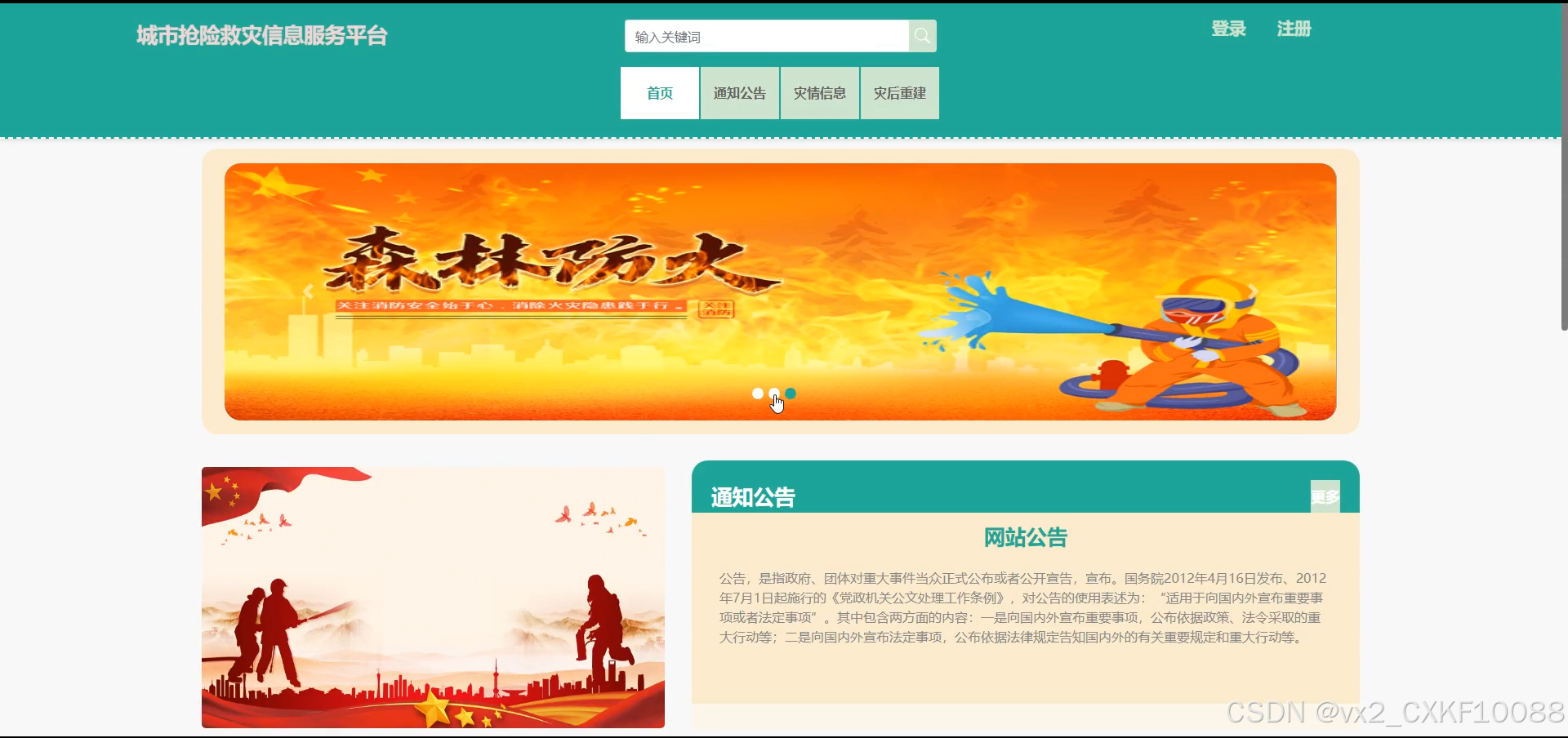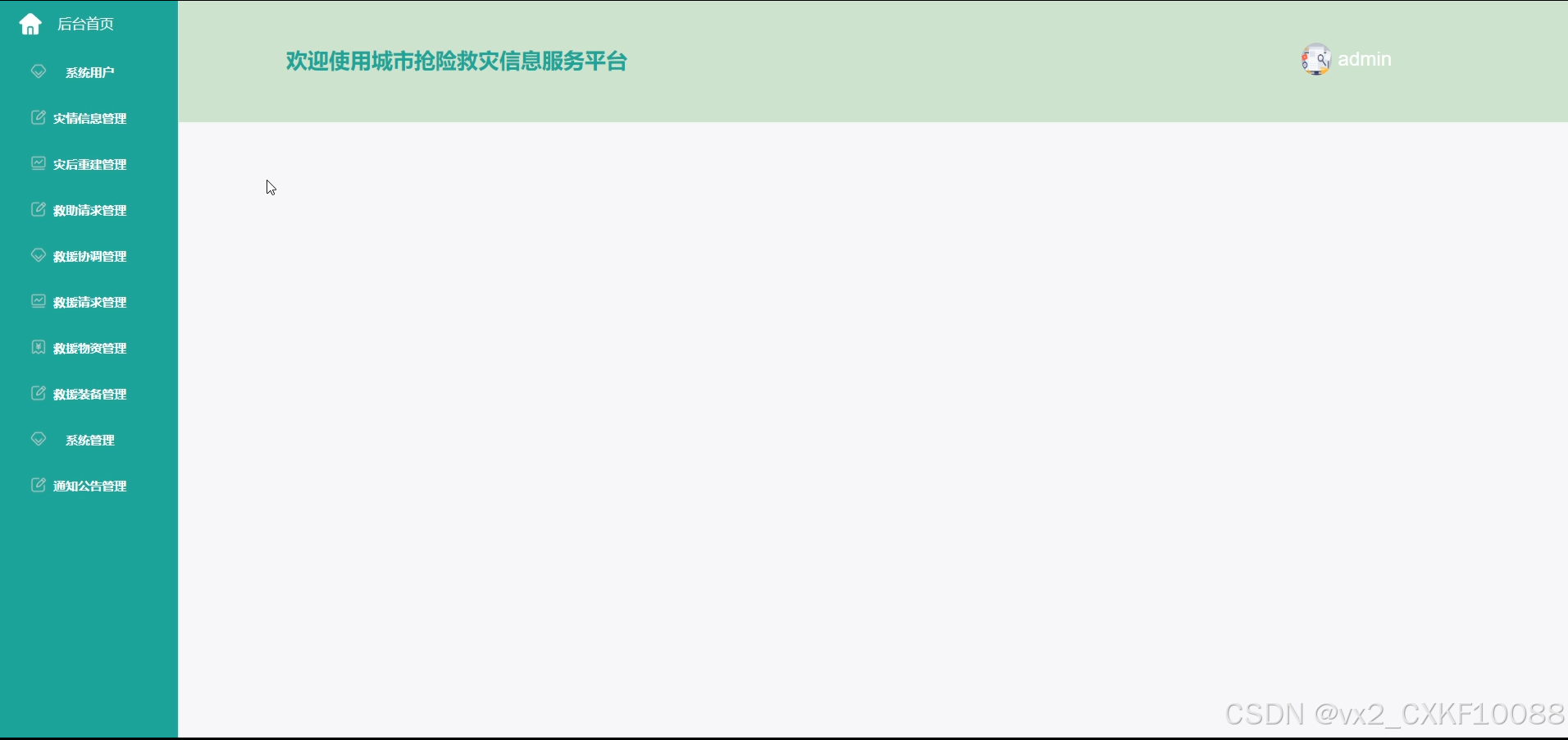 Key words: urban rescue and disaster relief information service platform; Java; springboot framework; MySQL database;