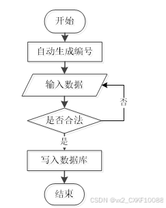 用户成功登入系统后就能够实现增加数据的操作,增加数据的编号是特定的,系统生成,用户不能随意填写,除了编号以外,其他增加信息用户自己填写,填写后的信息经过系统验证,验证合法通过就显示增加数据成功了,相反的话,就没有增加成功,数据新增数流程图如下图2-3所示。