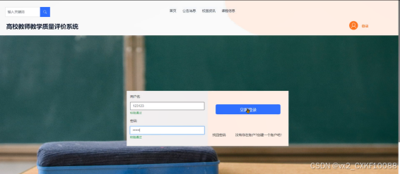 (1)登录:教师用户的账号是由管理员在后台进行添加生成的,只需输入账号密码即可登录系统。