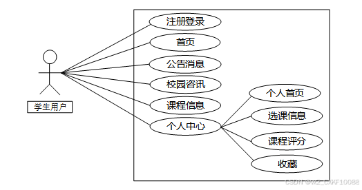 高校教师教学质量评价系统中学生用户角色用例图如图2.1所示: