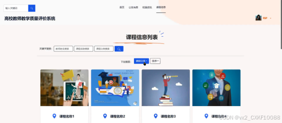 (4)课程信息:用户点击可通过搜索教师姓名、课程名称、课程分类进行查看课程信息,同时可对课程进行收藏和选课操作。