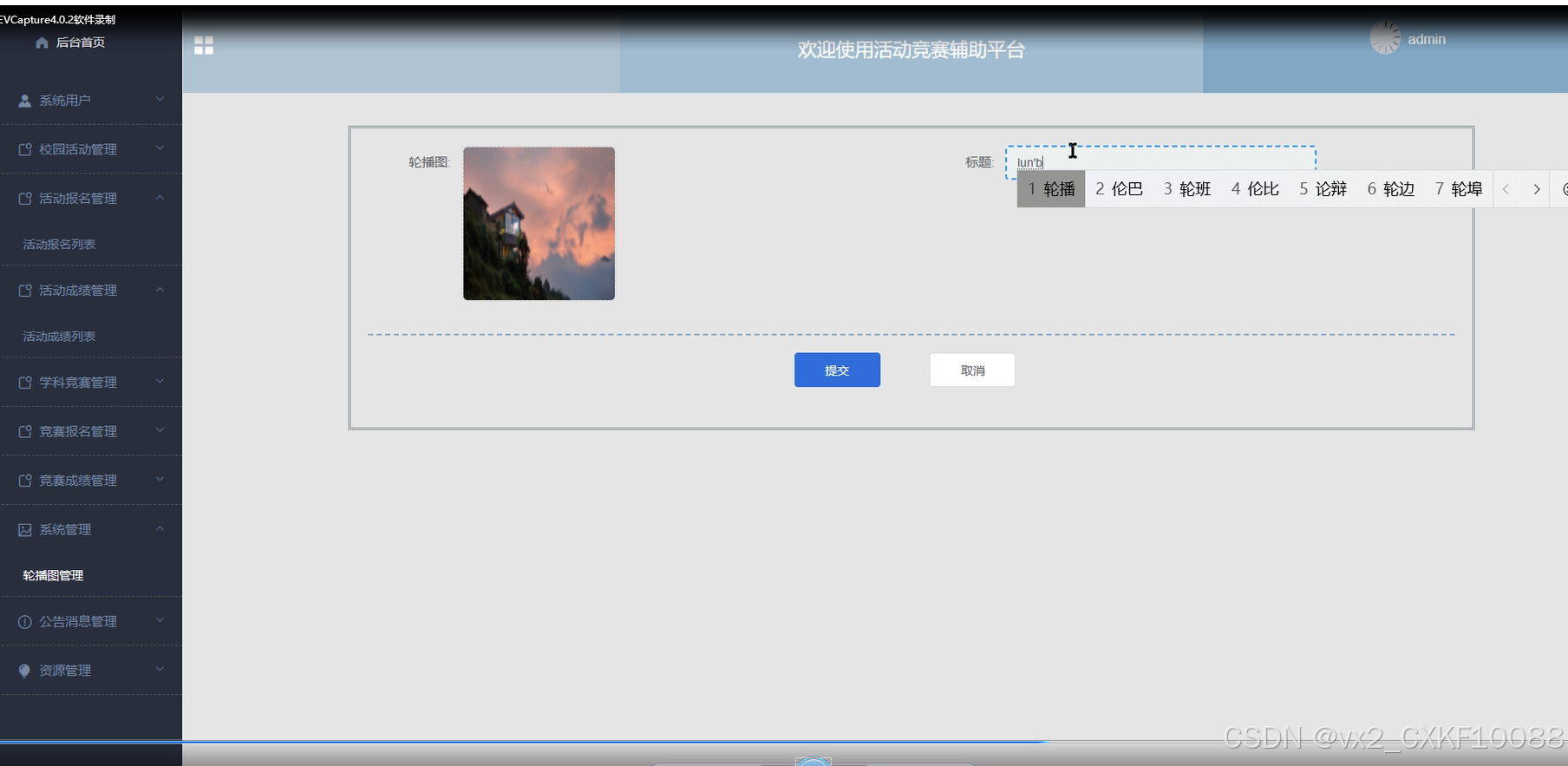 系统管理:管理员可以对系统前台展示的轮播图进行增删改查,方便用户进行查看。系统管理界面如下图所示。