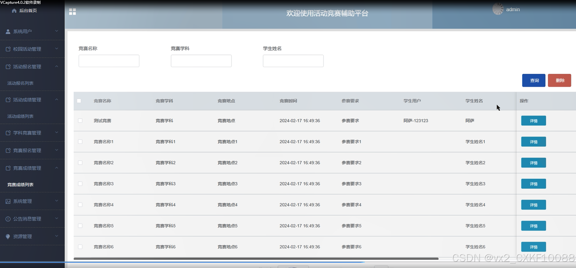 - 竟赛成绩管理:记录和统计学生在竞赛中的成绩,生成排名和奖励名单。