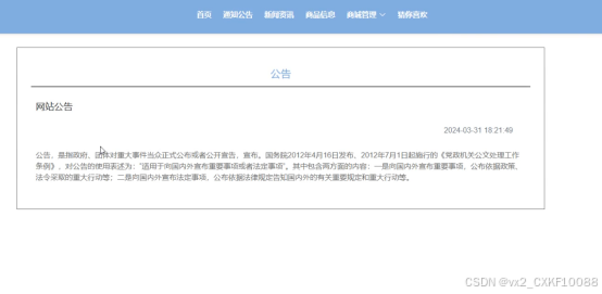 当用户点击“通知公告”时,可查看系统公告内容。界面如下图4.1.4所示。