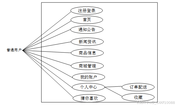 根据上一节功能分析,可以得出系统的用例,普通用户角色用例如图2.1所示。