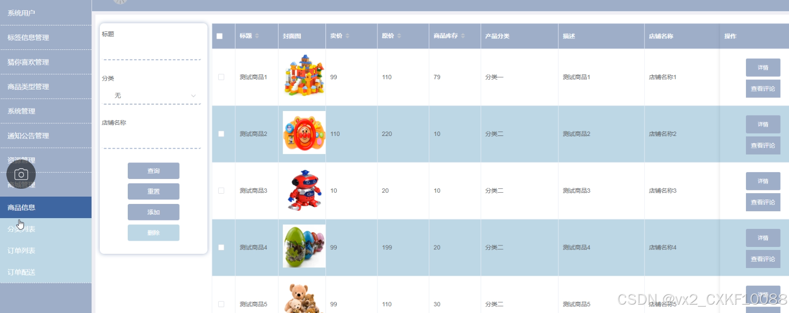 - 猜你喜欢管理:管理员可以在此功能下对猜你喜欢列表和猜你喜欢添加进行增删改查操作。