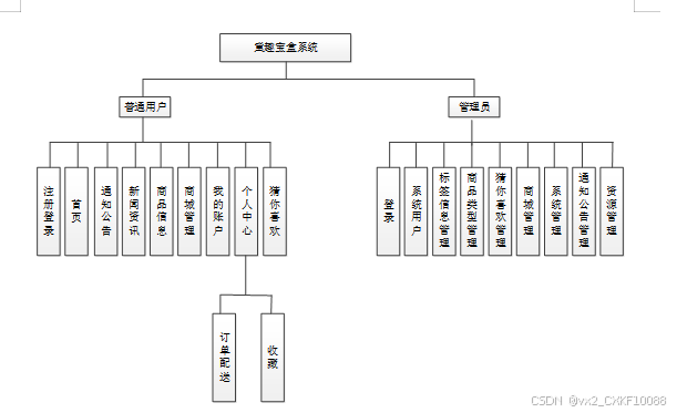 (3)确定好系统使用的技术,进行在线确认系统所划分的用户触,并且根据用户触划分确定所要设计的功能模块,对springboot童趣宝盒系统的设计主要划分别为管理员和用户,并所使用的功能模块也相应不同,但系统的数据库实现的内容是交互的,用户可以随时根据自己的需求进行商品信息搜索,对于系统工作人员可以根据自己的分管内容进行在线信息的处理及操作,管理员获取到所有用户的详细数据信息,并根据需求进行第一时间处理解决。