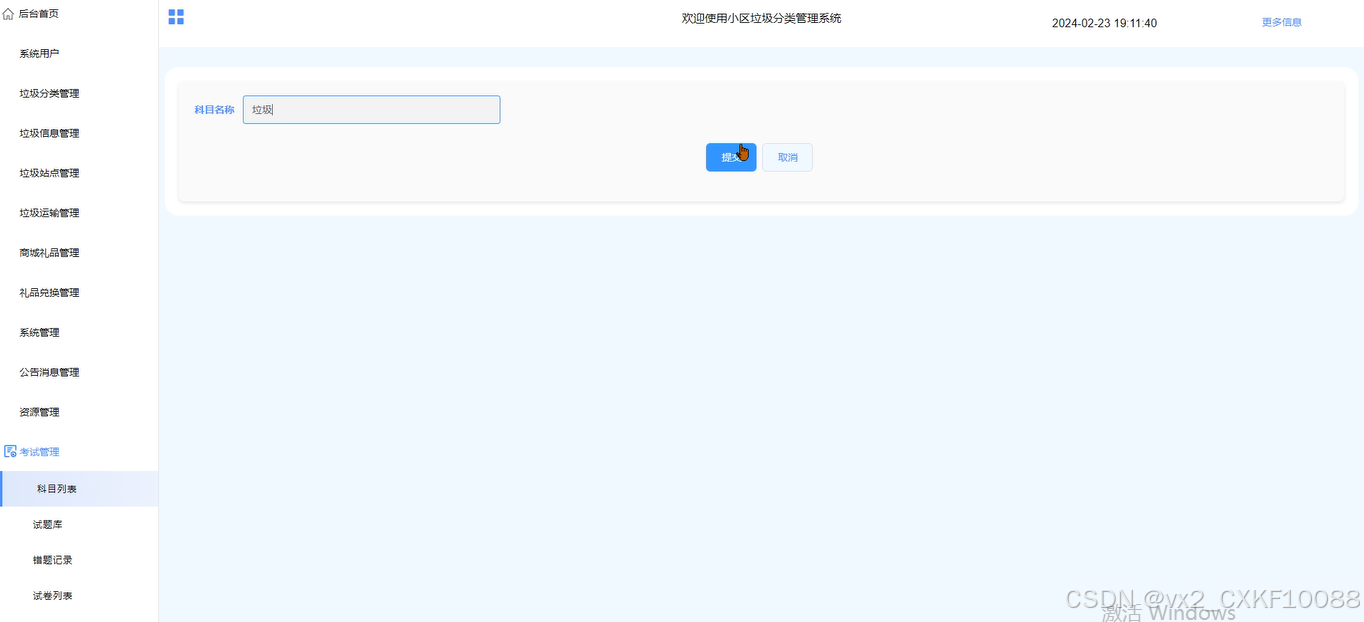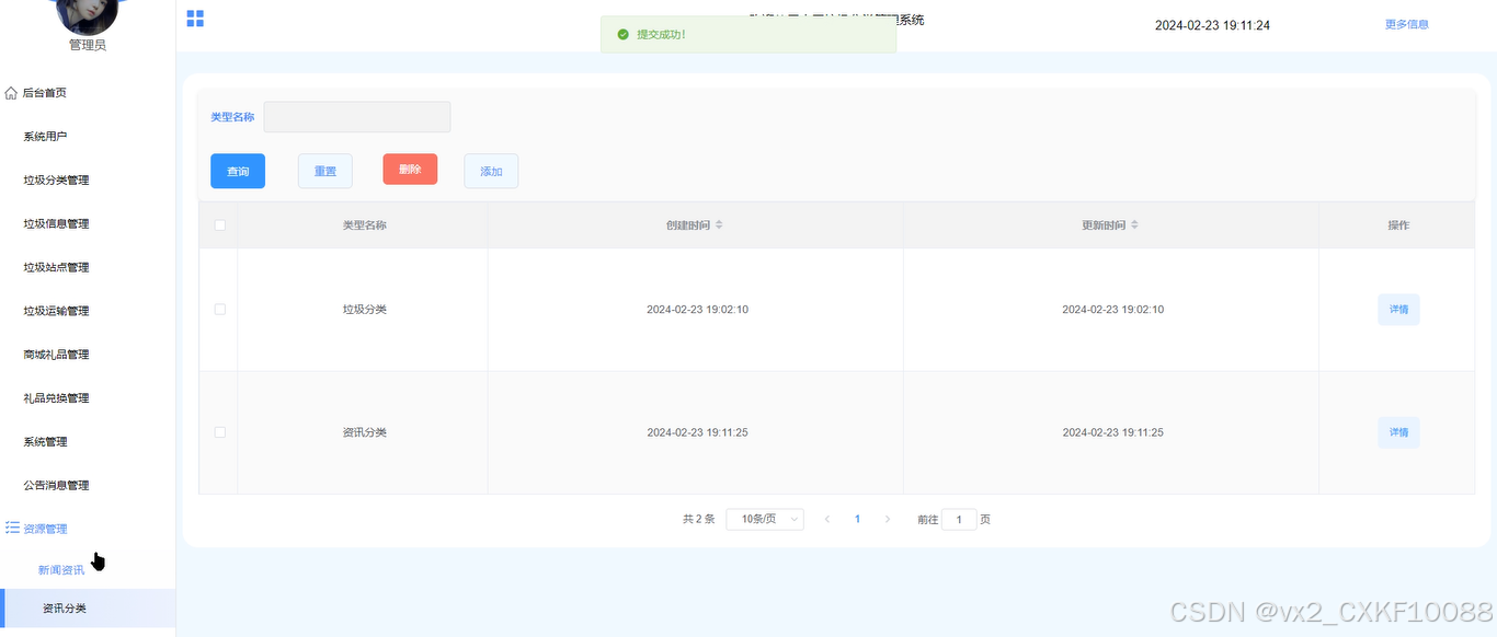 (4)垃圾分类管理:管理员点击可查看垃圾分类列表,同时可对垃圾分类进行增删改查。