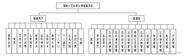 按照智能小区垃圾分类管理系统的设计与实现的角色,我划分为了普通用户和管理员两大模块: