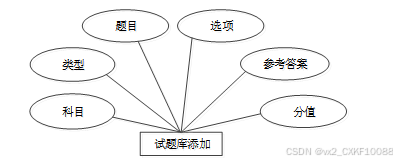 考试管理:管理员点击可查看科目列表、试题库、错题记录和试卷列表。如需添加新的试题库,点击右侧“添加”按钮,选择科目、类型,输入题目、选项、参考答案和分值,点击“提交”按钮进行添加;如需添加新的试卷,点击右侧“添加”按钮,选择科目名称,输入试卷名称、答题时长、总分和状态,点击“提交”按钮进行添加。界面如下图所示。