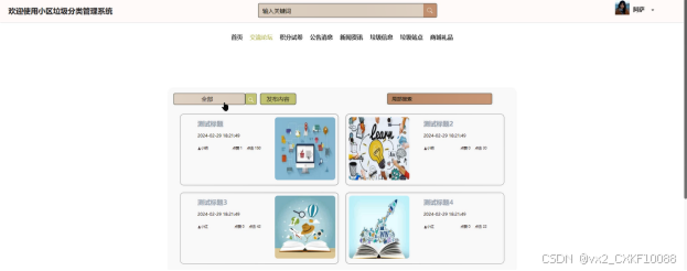 (2)交流论坛:用户点击可通过局部搜索进行查看论坛帖子,同时也可点“发布内容”,上传封面图,输入标题,选择分类,输入标签和正文,发布论坛帖子。