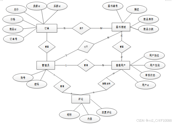 下面是整个图书推荐平台系统中主要的数据库表总E-R实体关系图。