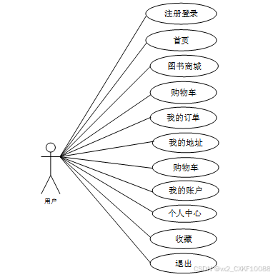通过3.3功能的分析,得出了本图书推荐平台系统的用例图: