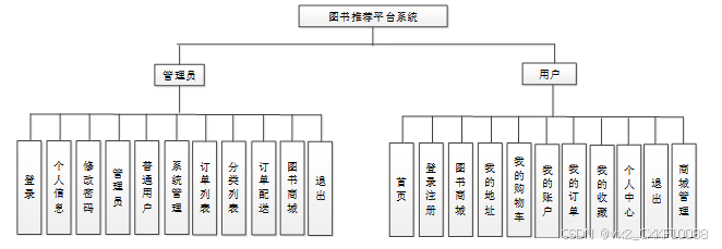 按照图书推荐平台系统的角色,我划分为了普通用户管理模块和管理员管理模块这两大部分。