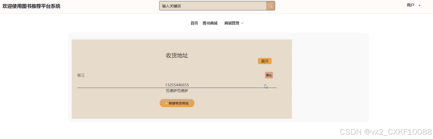 当用户点击“收货地址”右后,就回去显示出目前现有的地址,也可以添加新的地址,界面如下图5-4所示。