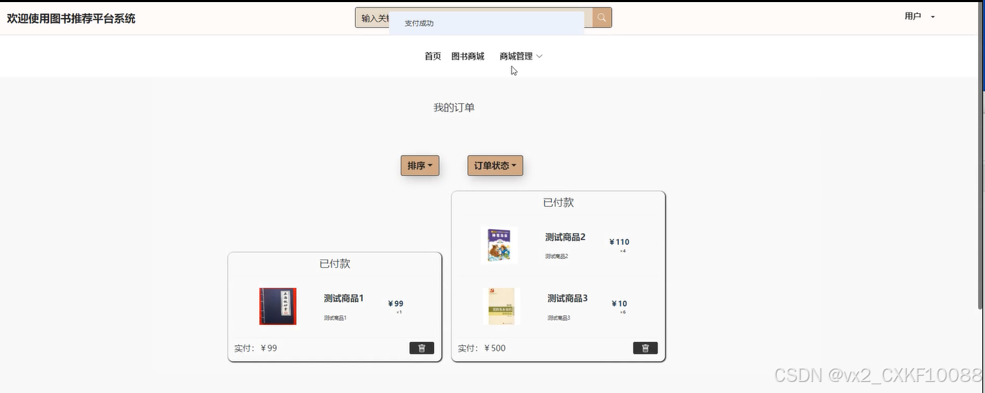 (4)我的订单:用户在提交订单后,可以对提交的订单进行管理。