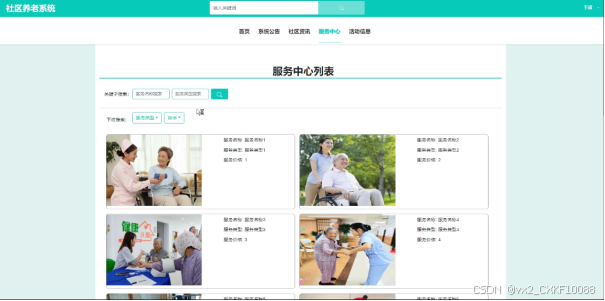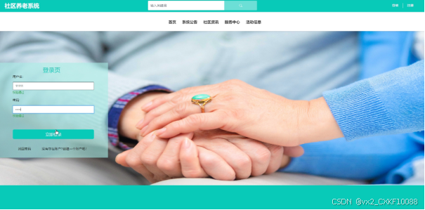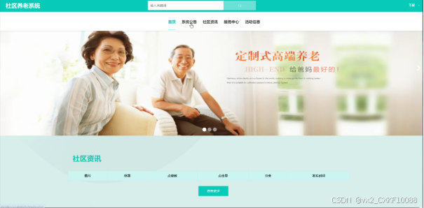 关键词:springboot;Java;MYSQL;社区养老系统