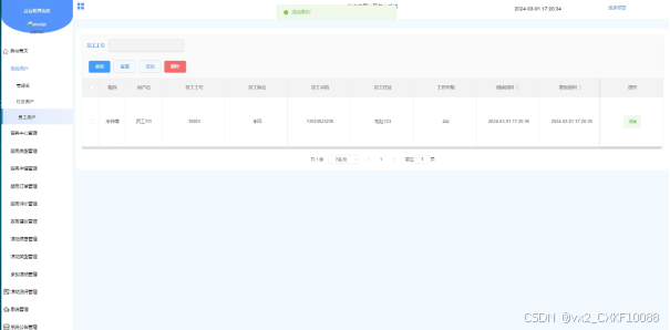 - 登录:员工用户由管理员添加,使用管理员提供的账号密码可进行登录,并提供个人信息管理和修改密码信息管理的功能。