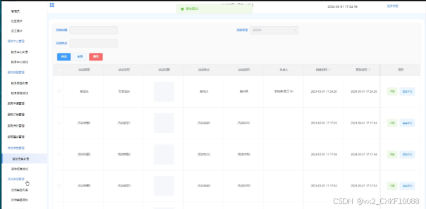 - 活动类型管理:可查看所有活动类型信息,进行增删改查操作,支持活动类型搜索,可点击查看详情。