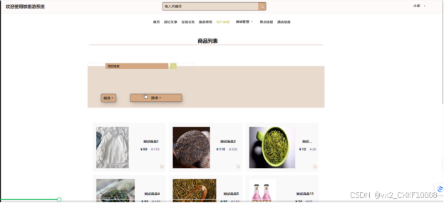 - 特产商城:可以查看商品列表中某个商品的详细信息并可以加入购物车、收藏和立即购买。