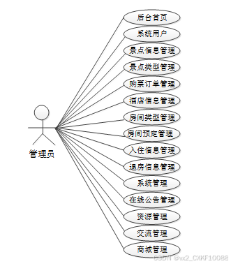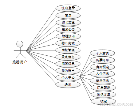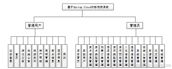 按照基于Spring Cloud的够旅游系统的设计与实现的角色,主要包括普用户模块和管理员这两大模块。各模块功能如下: