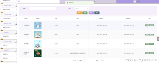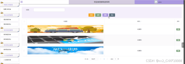 - 系统管理:管理员可以查看轮播图列表中某一轮播图详情,可以对轮播图信息进行增删改查操作。