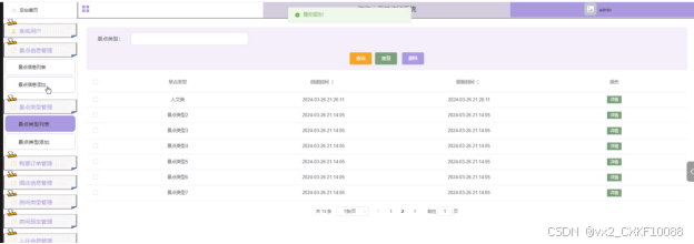 - 景点类型管理:管理员可以查看景点类型列表中某个类型的详情,可以对景点类型信息进行增删改查操作。