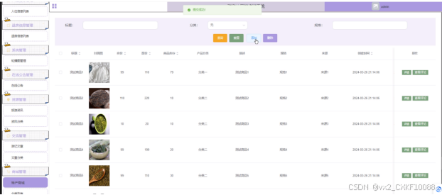 - 商城管理:可以对特商城、分类列表信息进行查询、添加、重置和删除操作;可以查询、重置和删除订单列表、订单配送信息。