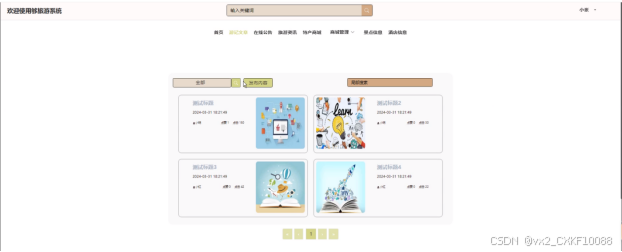 - 游记文章:用户可以发布游记文章,可以查看游记文章列表中某篇文章的详细信息并可以点赞、收藏和评论。