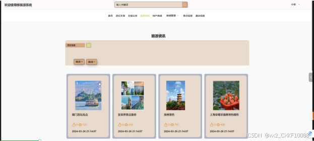 This article provides a detailed introduction to the development process of a tourism system based on Spring Cloud, including research background, system feasibility, functional modules, and database design techniques. The development of a tourism system based on Spring Cloud aims to provide users with a modern, efficient, and convenient tourism service platform, providing tourists with a better travel experience.