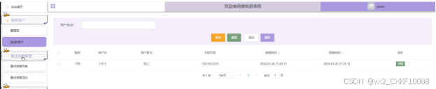 - 系统用户:管理员可以查看系统用户(管理员、旅游用户)列表中某一用户的详情,可以对系统用户信息进行增删改查操作。