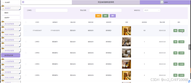 - 退房信息管理:管理员可以查看退房信息列表中某个用户的退房详情并,可以查询、重置和删除退房信息。