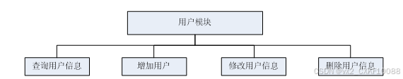本系统的用户包括管理员和旅游用户。两种用户模块的功能基本是相同的,用户比企业、管理员多了一个注册功能,所以以用户模块的结构图为例进行分析,用户模块结构图为例进行分析,如下图: