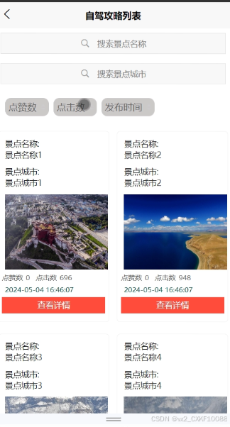 自驾攻略:用户可以查看自己感兴趣的自驾攻略,可以进行点赞评论和收藏。其界面如下图4-7所示。