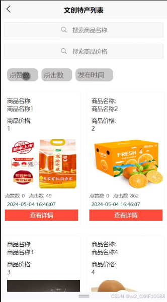 文创特产:用户可以查看自己感兴趣的文创特产信息,可以进行点赞评论和收藏。其界面如下图4-6所示。
