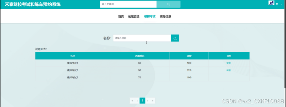 (3)模拟考试:用户嗲你可查看试题列表,同时可进行答题操作。