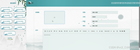 随着社会交通工具的普及和人们对驾驶技能需求的增加,驾校行业逐渐成为人们学习驾驶技能的重要选择。然而,传统的驾校管理模式存在着课程资源分配不均衡、预约流程繁琐等问题,影响了学员的学习体验和驾校的管理效率。因此,设计和实现一套基于 Spring Boot 的禾泰驾校考试和练车预约系统具有重要的现实意义和发展需求。
