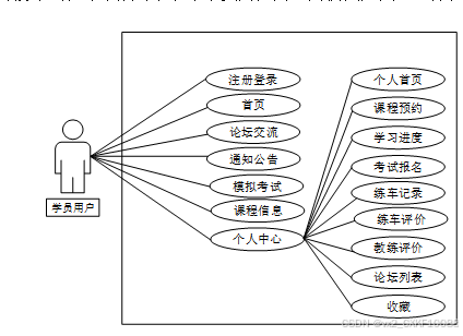 禾泰驾校考试和练车预约系统中学员用户角色用例图如图2.1所示: